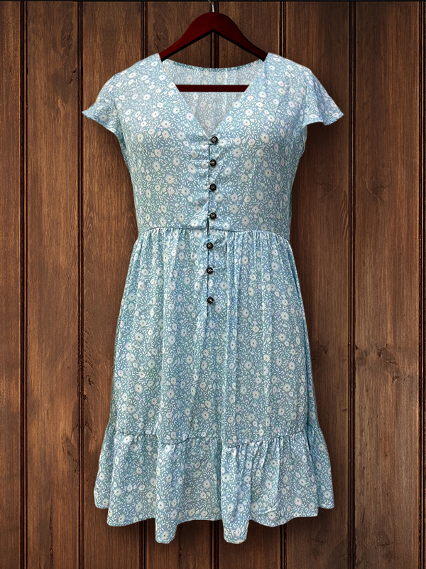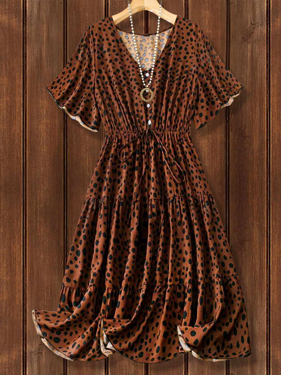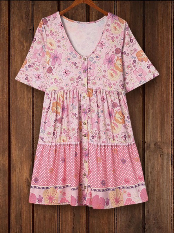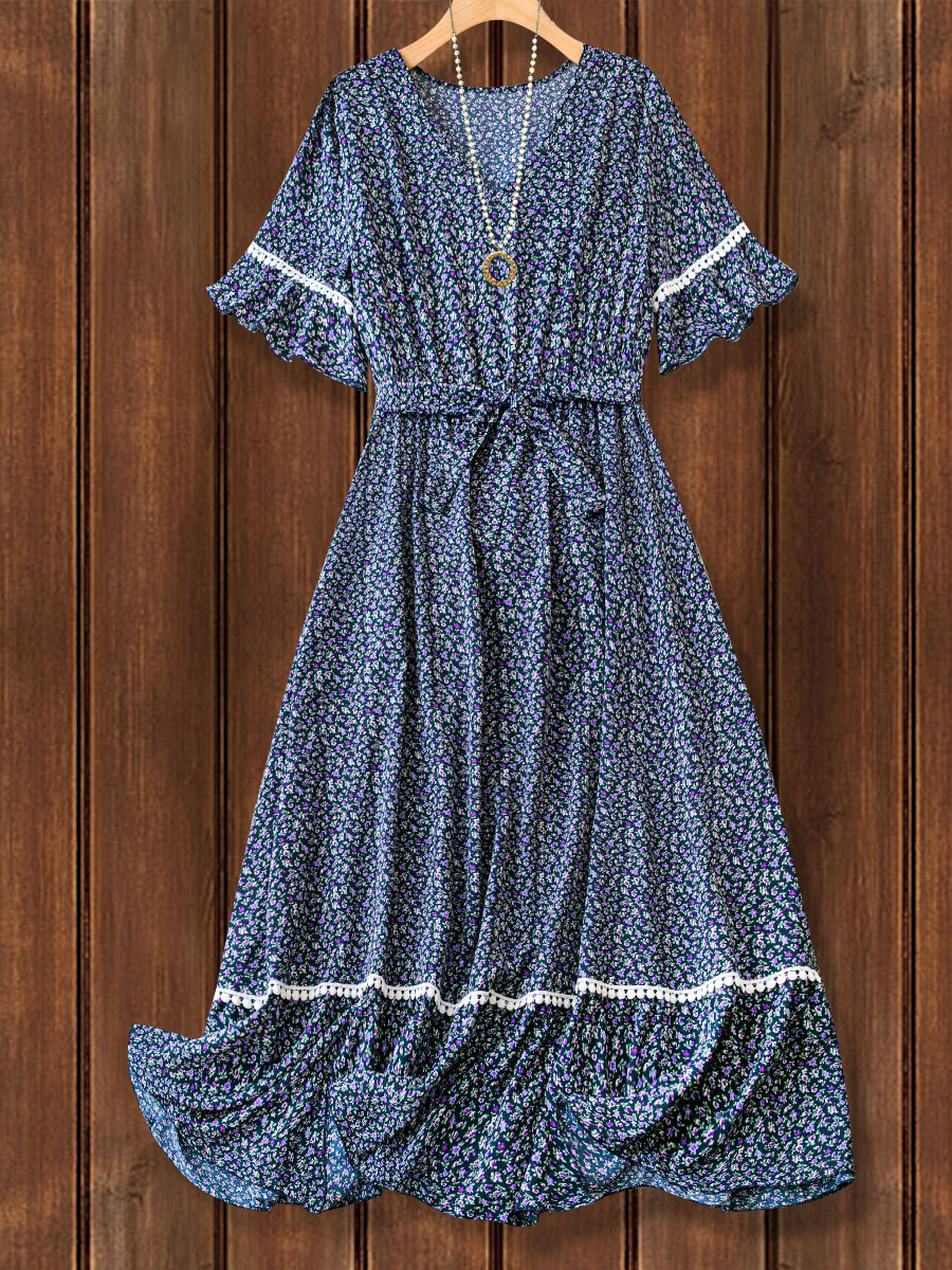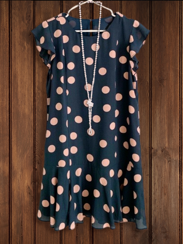 Navy Blue With Pink Polka Dots Ruffle Dress