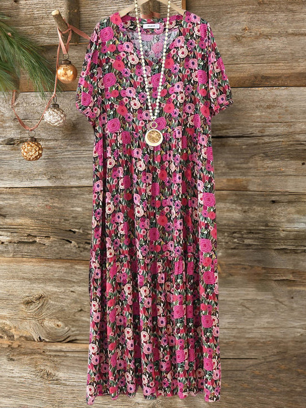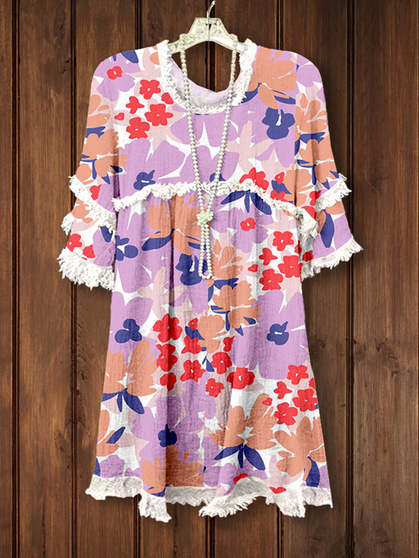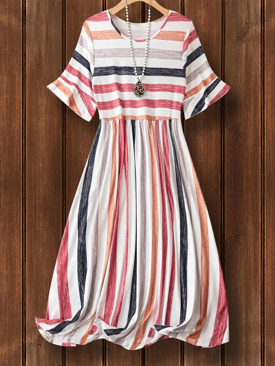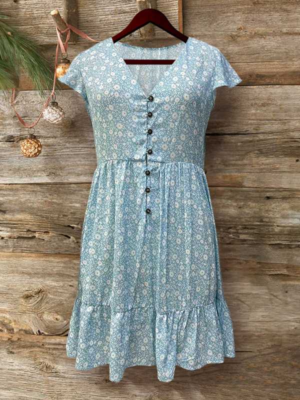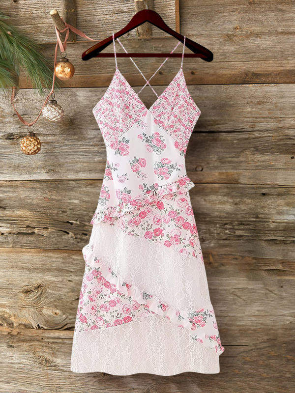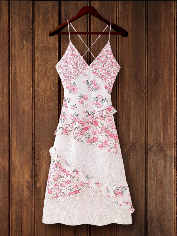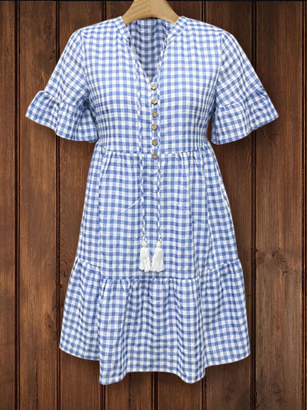 Navy Blue With Pink Polka Dots Ruffle Dress
