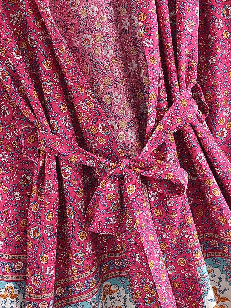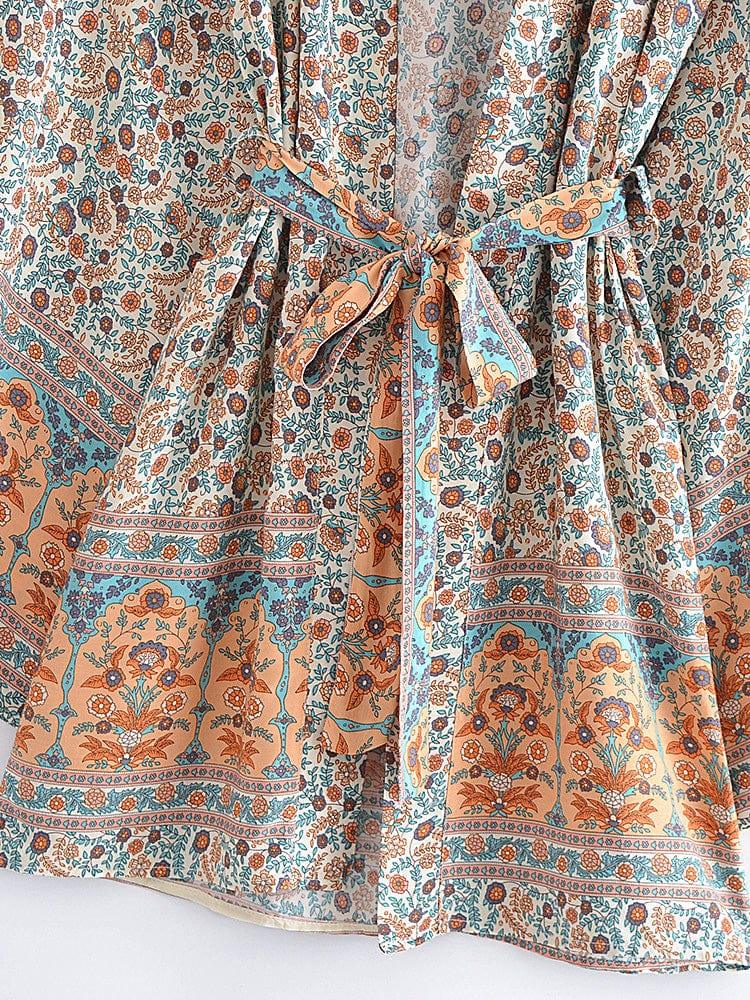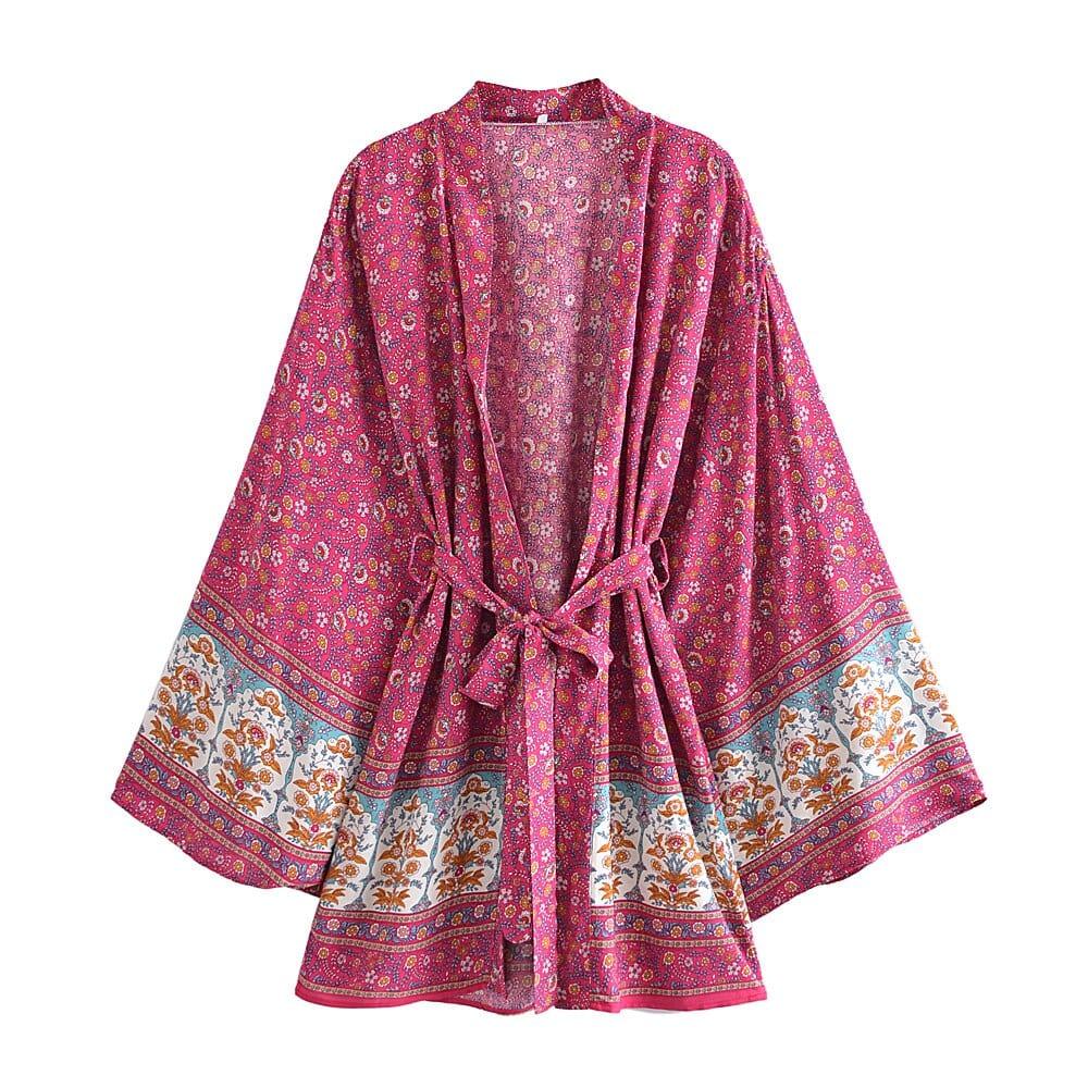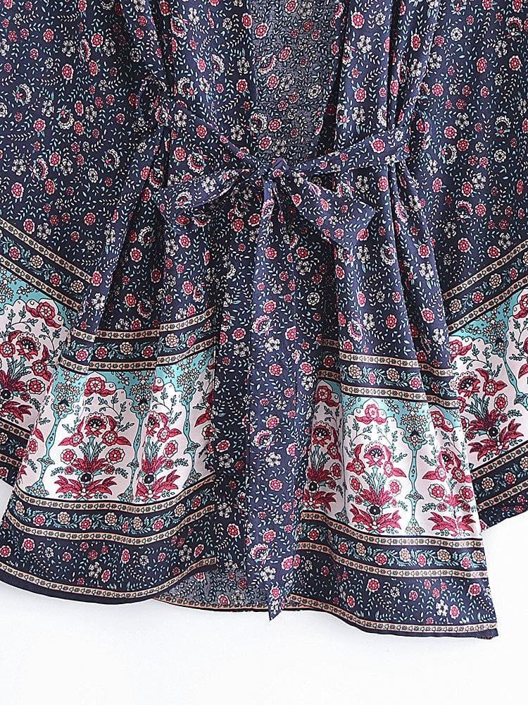 Take your style up a notch with our chic Aldora Boho Kimono in 5 Colors. Breezy and beautiful, this kimono is perfect for your next vacation. With a floral print and lightweight fabric, it's easy to pack and won't take up valuable luggage space. Whether you're hitting the beach or strolling around town, this kimono is the perfect finishing touch to your look.