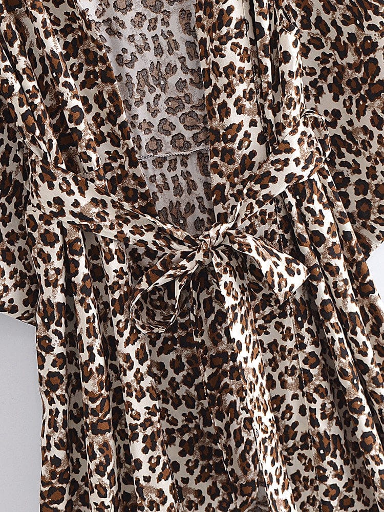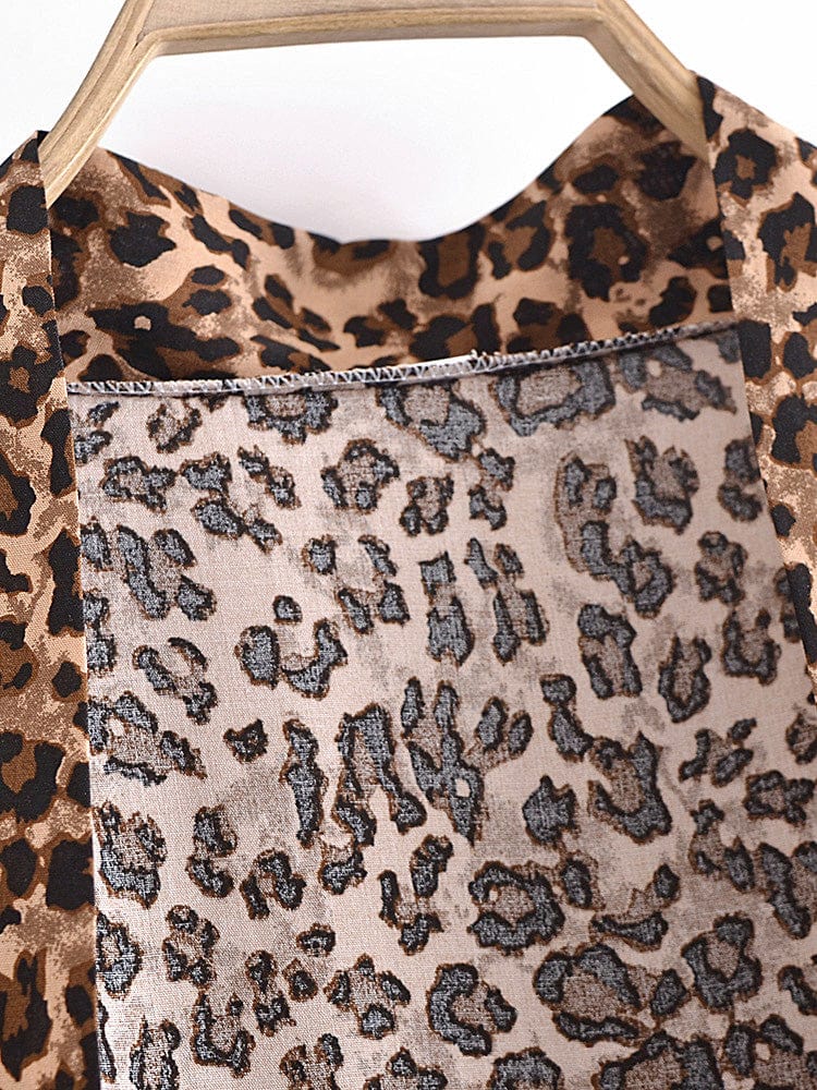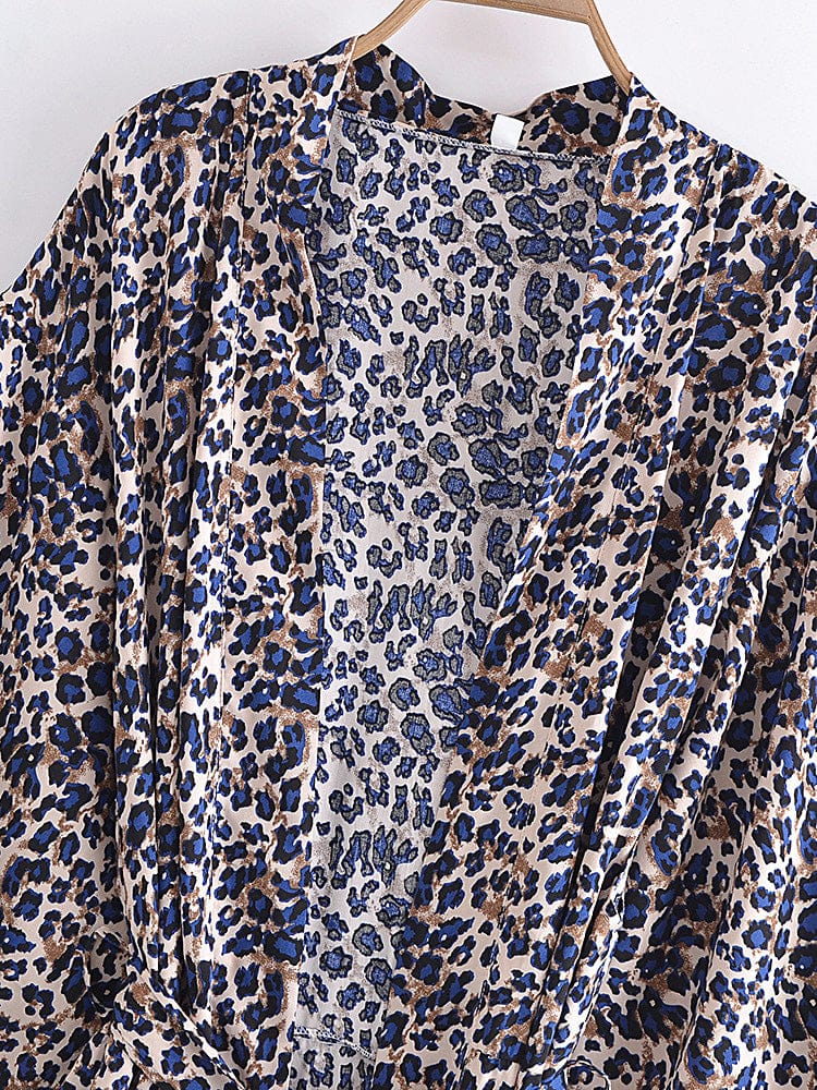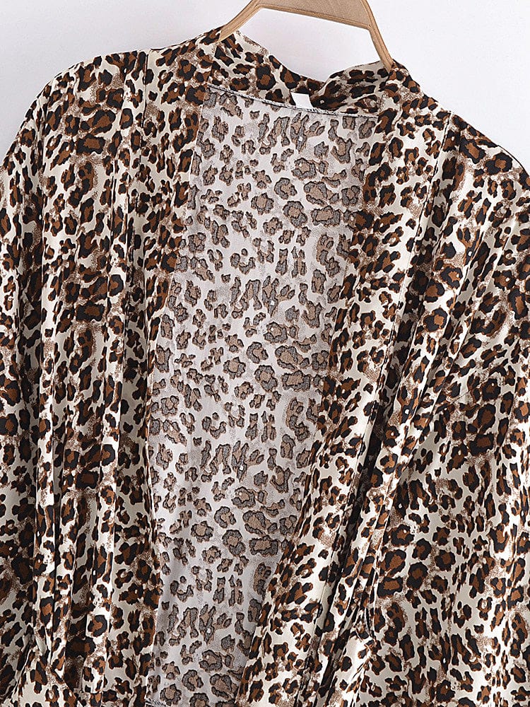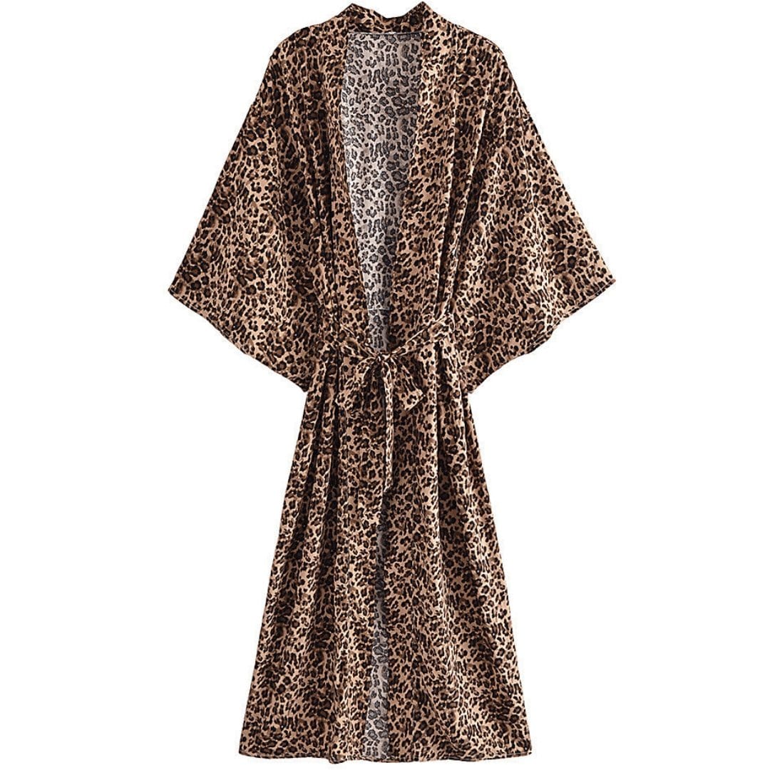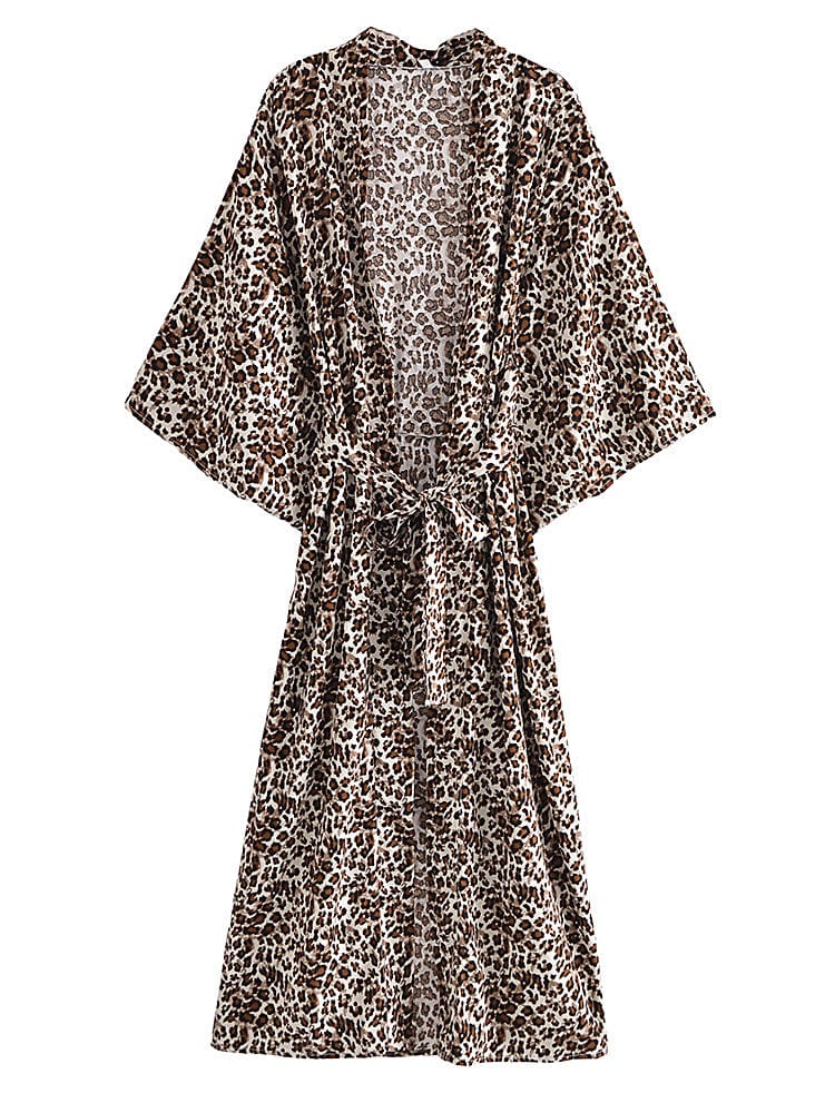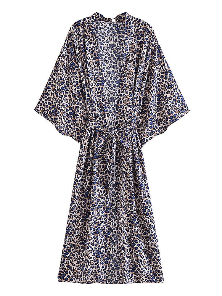 This vivid kimono is featured in a lightweight construction and longline silhouette with an animal print pattern, drop shoulder sleeves, and an open front, and is sure to turn heads.Specs: