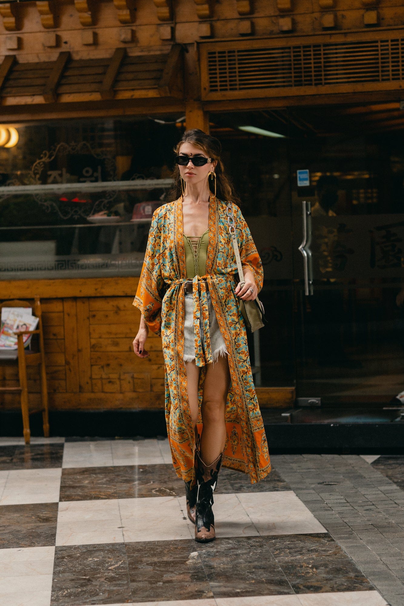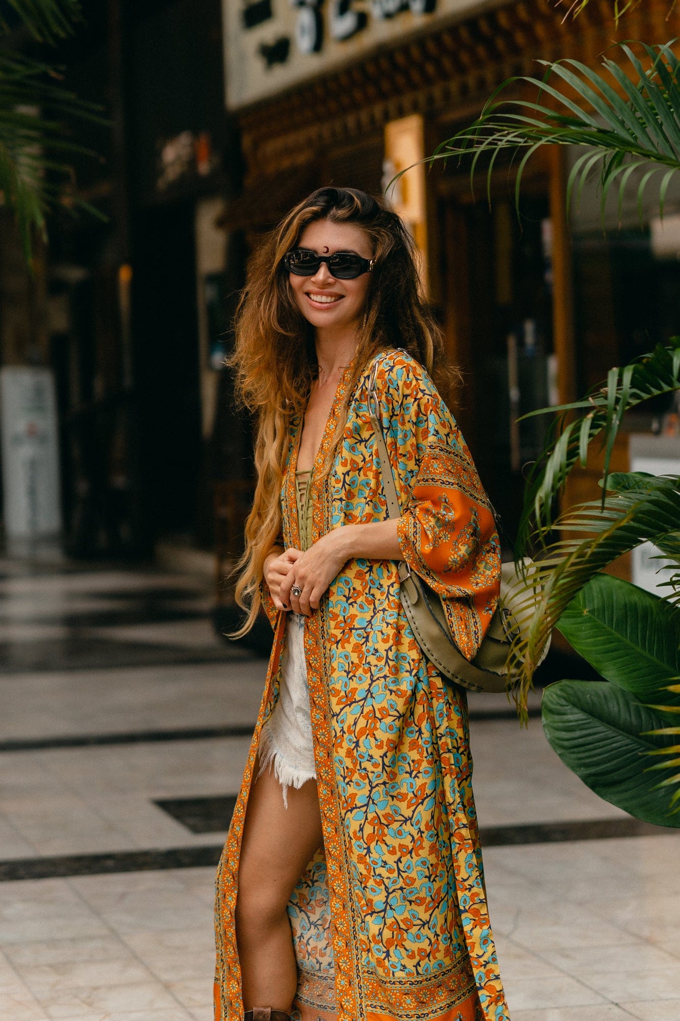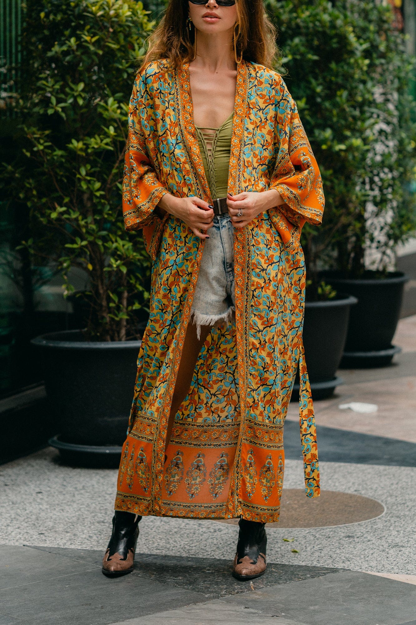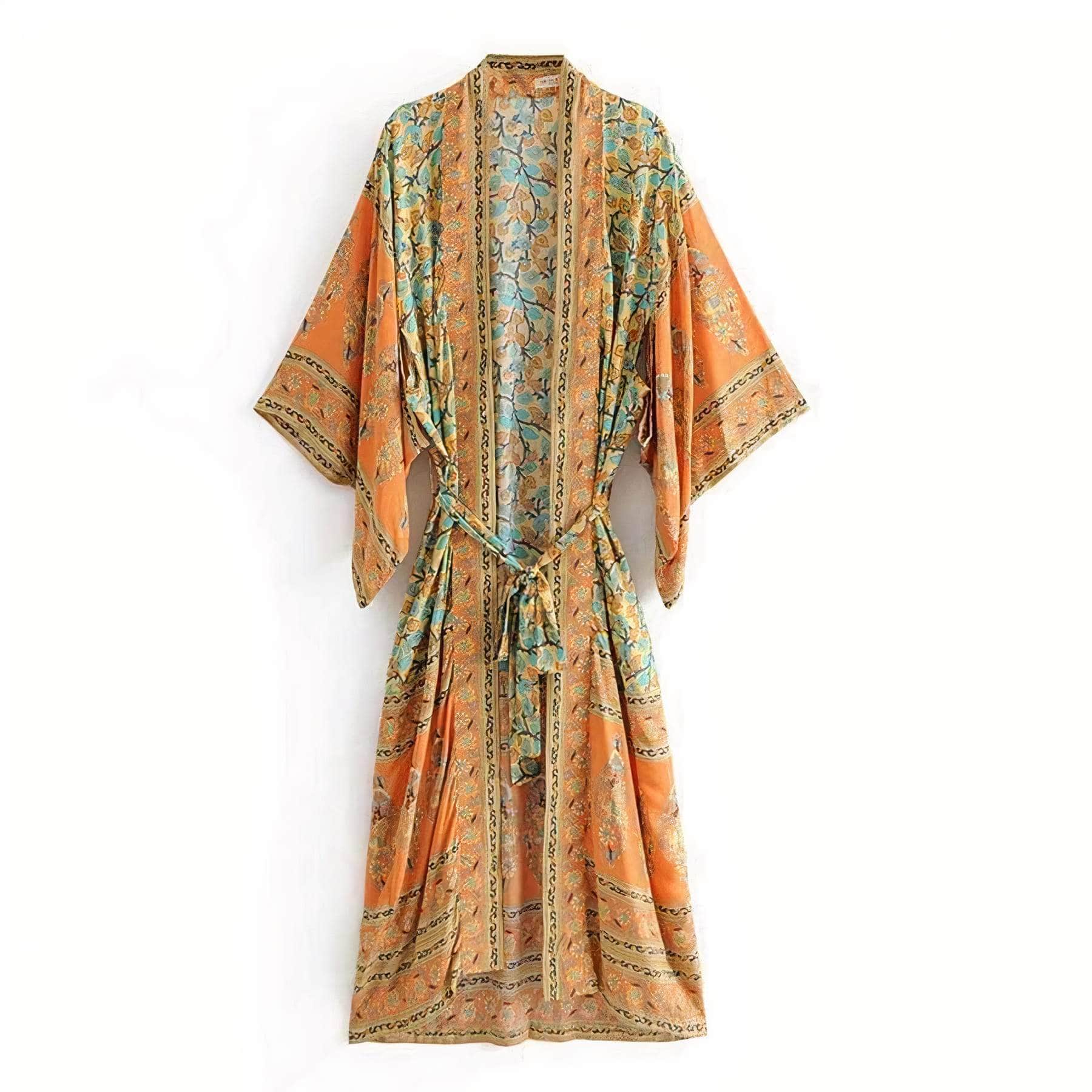 This beautiful long floral kimono makes your life easy �� it��s easy to style and easy to wear. With the soft, gentle material whether you��re lounging or layering, this kimono cover-up will make you feel like a queen.