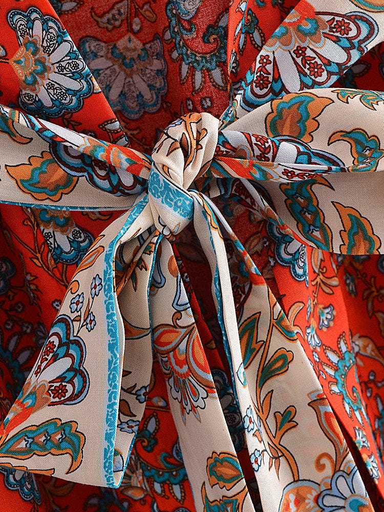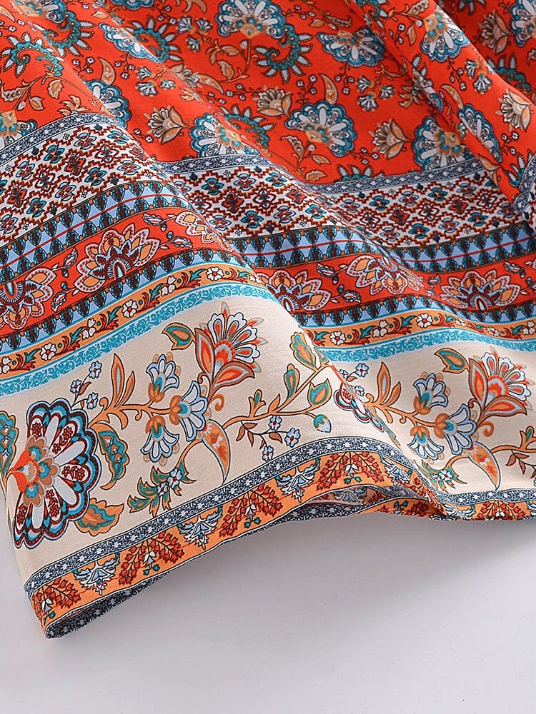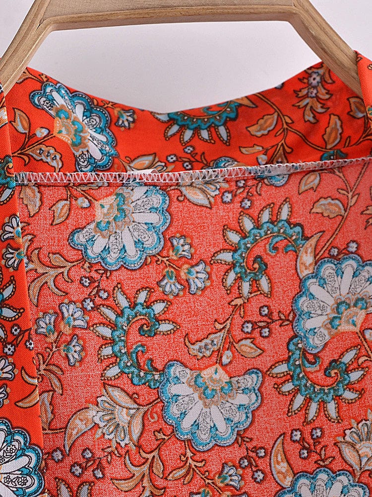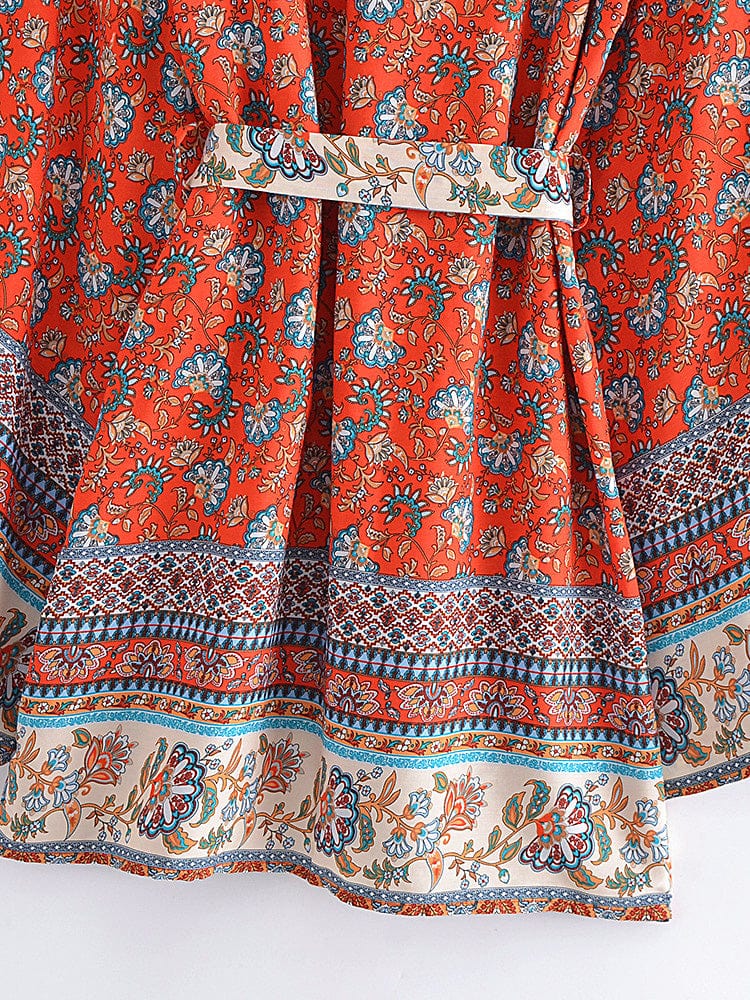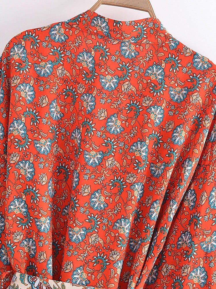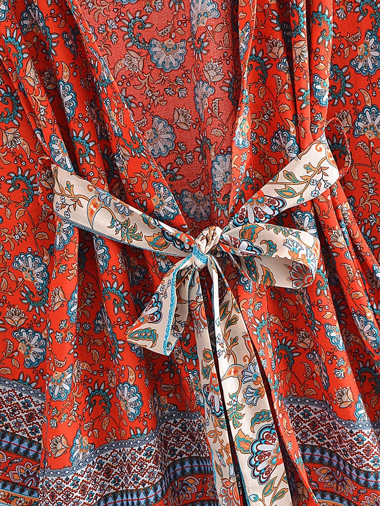 This bohemian kimono features a traditional,?floral pattern?throughout for enhanced dimension and an oversized, open-front silhouette.