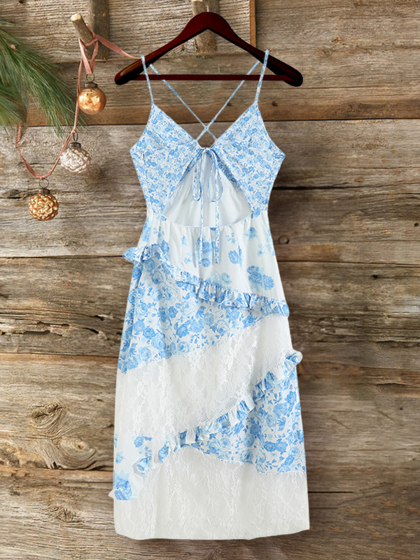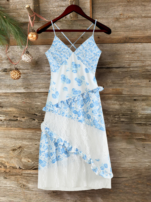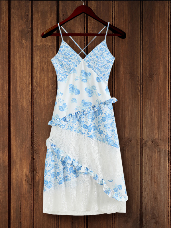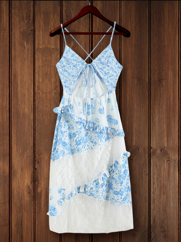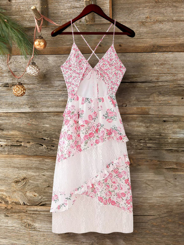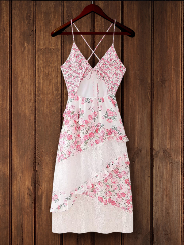 Bring a touch of sweetness to your wardrobe with our lace slip floral tiered dress. This romantic dress is adorned with a delicate floral print, and white lace is subtly stitched together on the fabric to add a touch of romance.