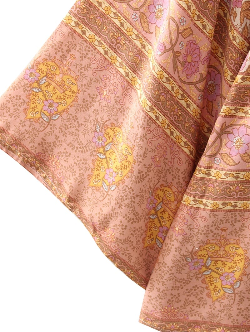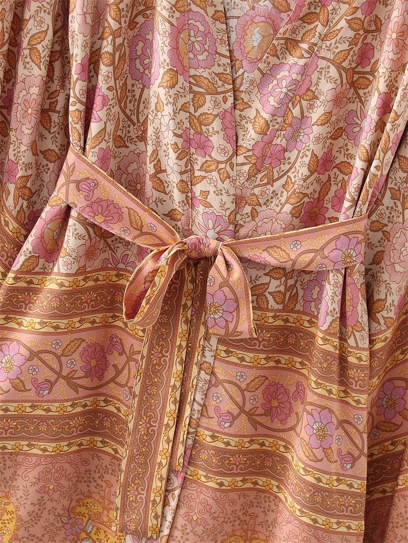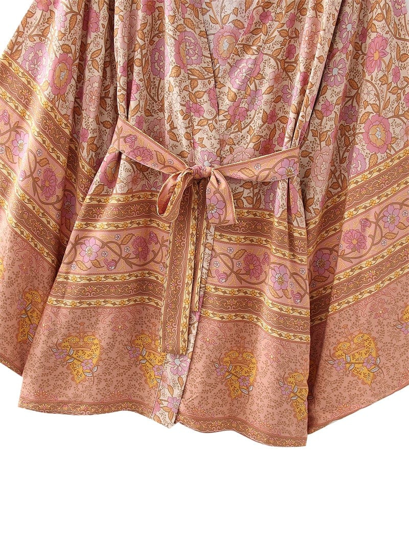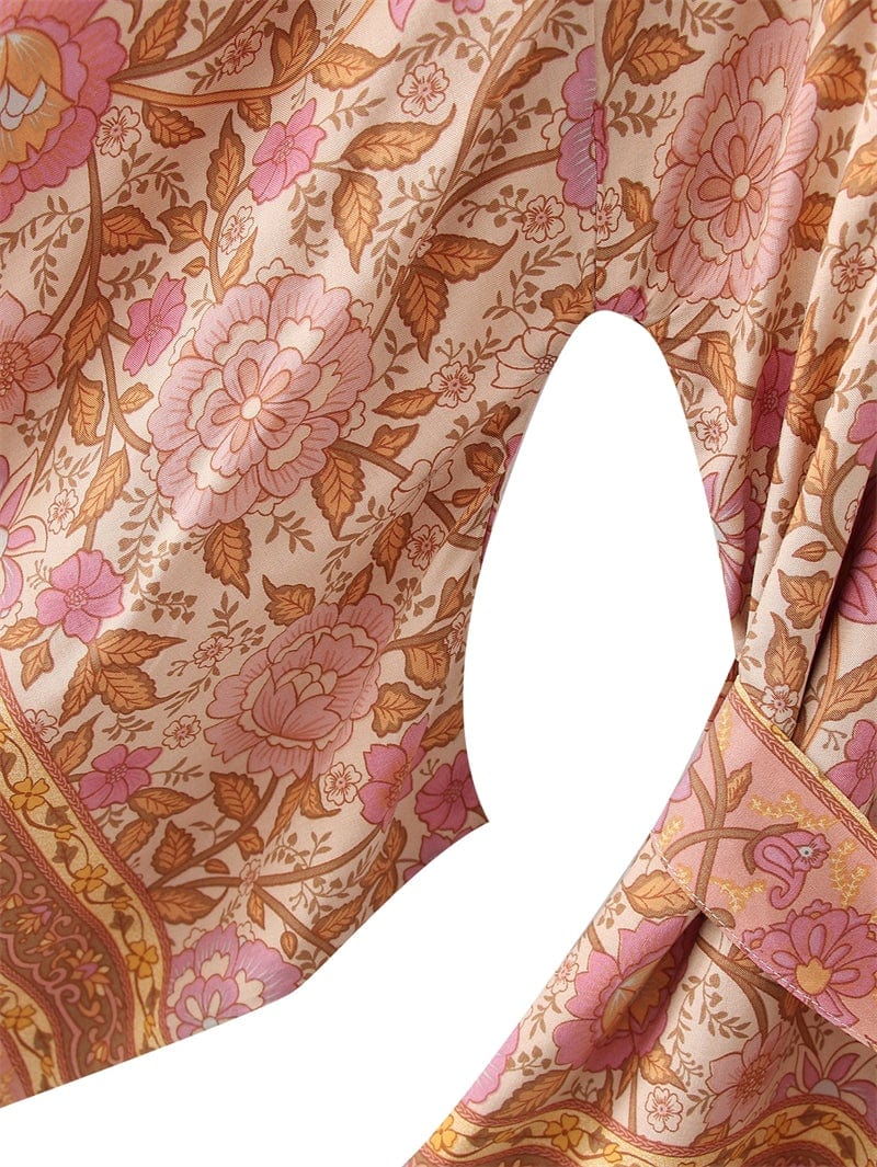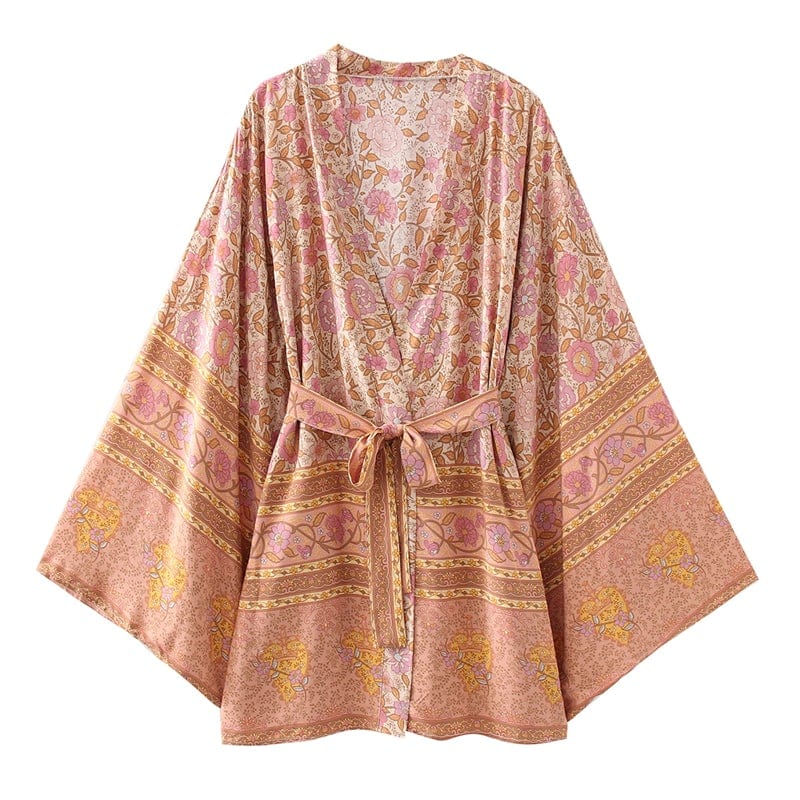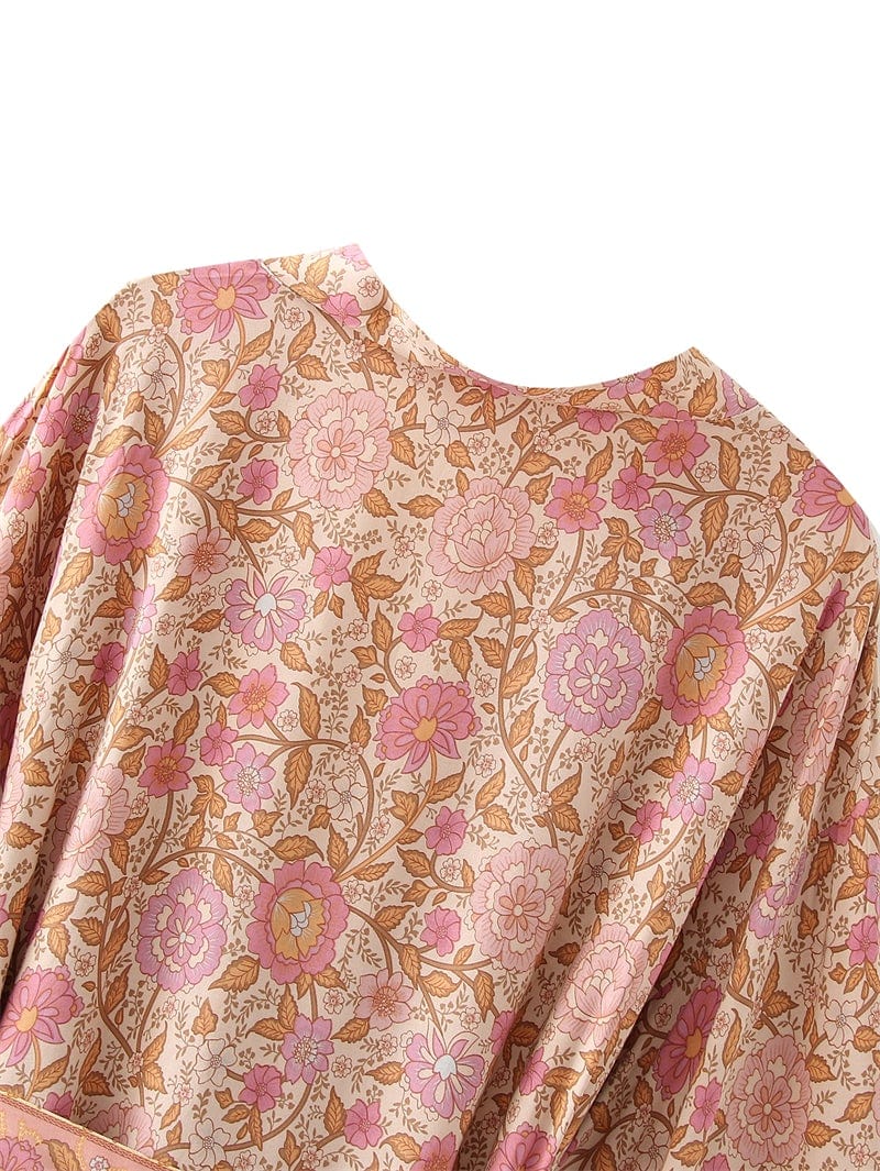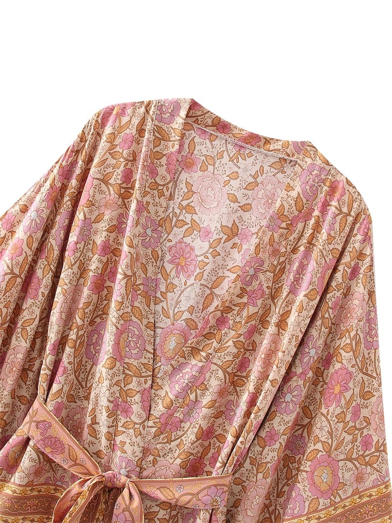 A longline silhouette with a bohemian-inspired floral print and gorgeous flare, dropping sleeves makes this the ideal layering garment.