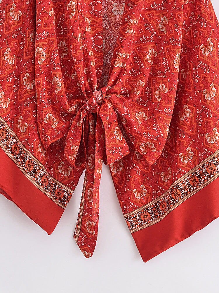 Look fierce and free in our Mara Cropped Kimono! This boho-inspired piece features a beautiful print and an open-front style that can be dressed up or down��jeans for day or beachwear for night! The long sash tie lets you choose your silhouette; whether you want a cropped, flowy look or a more fitted style, you're in control!?