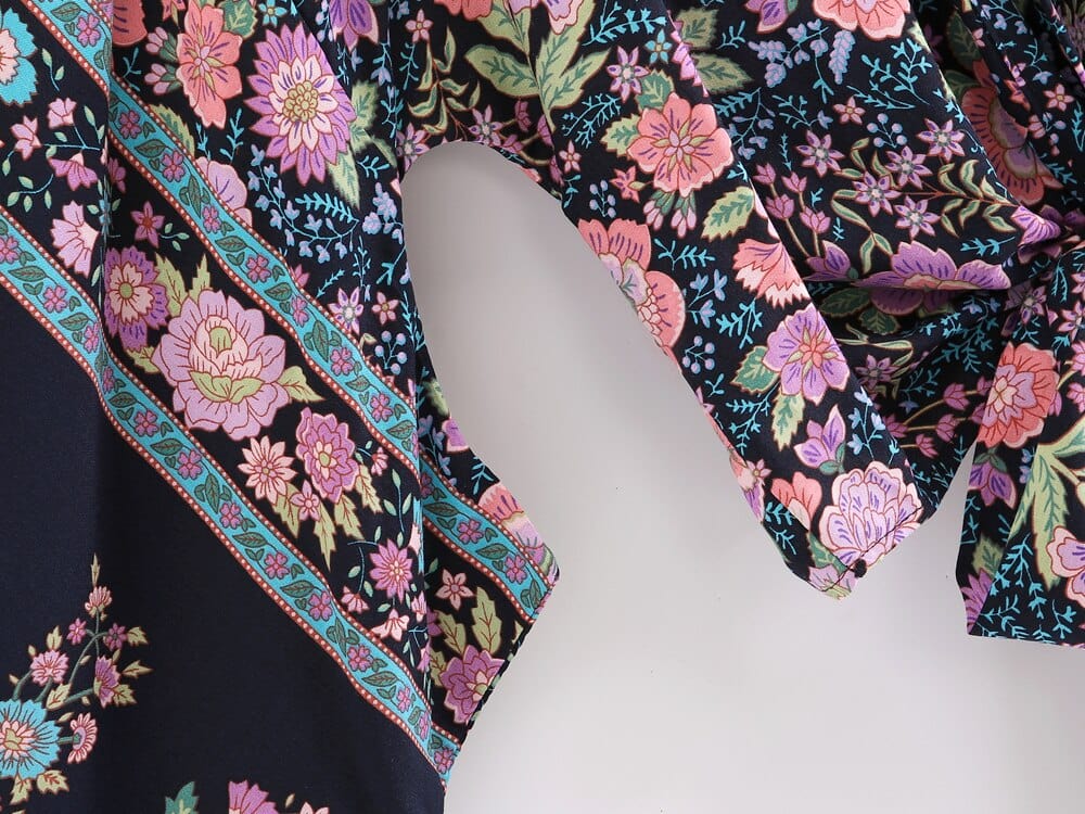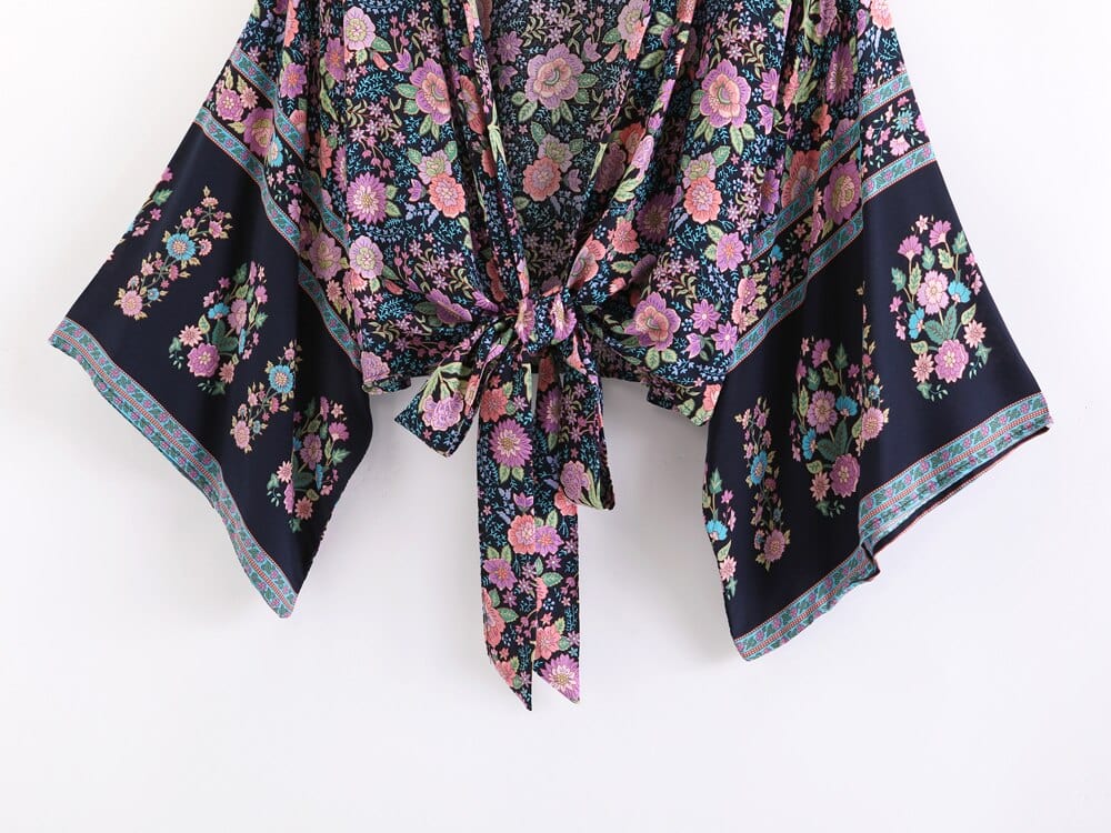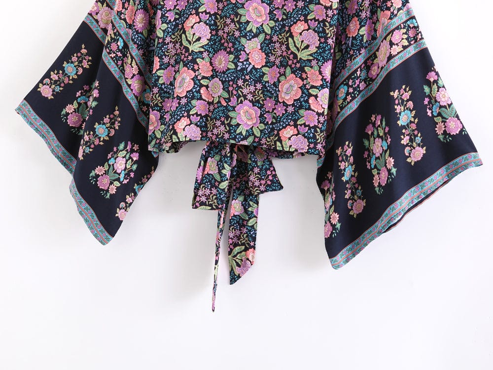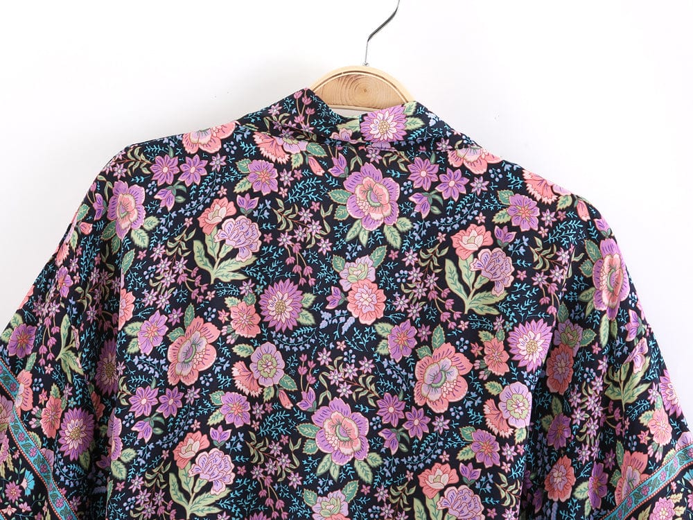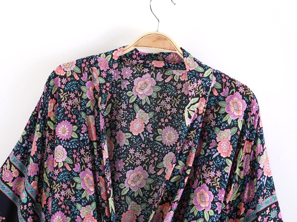 Our Terentia Boho Kimono will make you feel comfy wherever you're just wondering at home, or dressing up for an occasion.?Bold and striking floral print design.