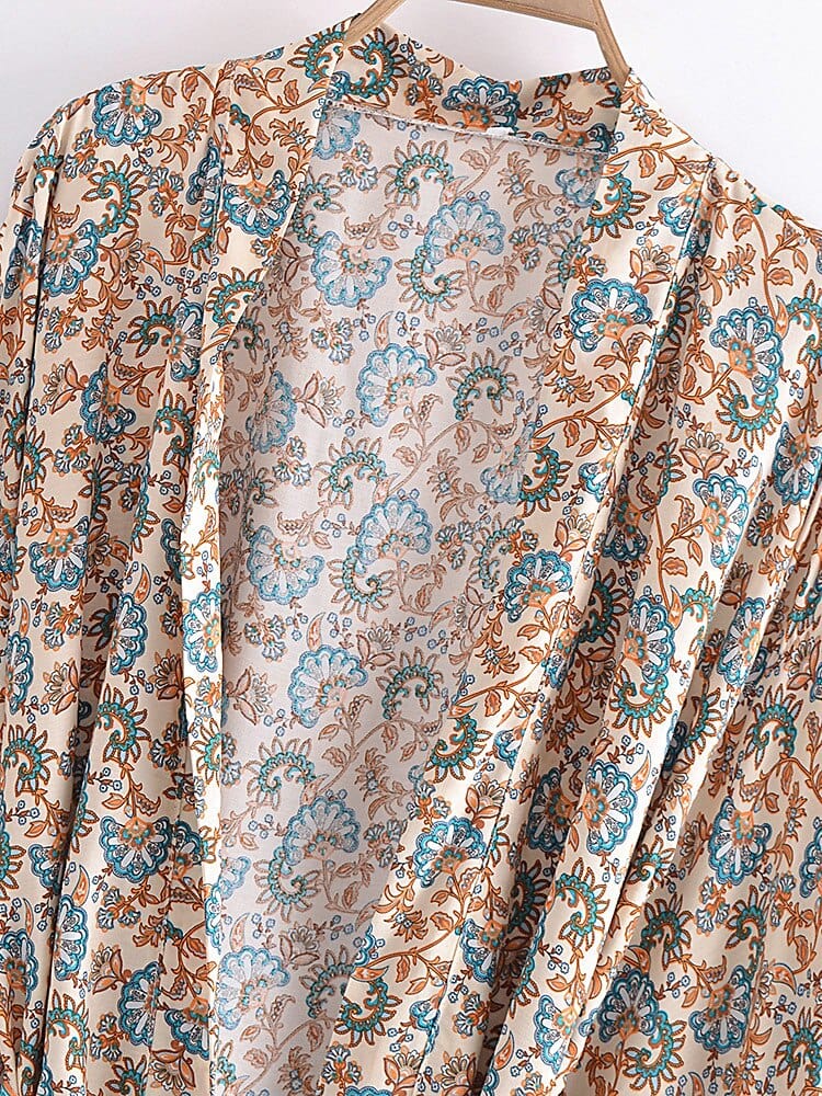 This billowy kimono has a loose fit and?a floral pattern?with long flowy sleeves and an open front, making it forever feminine and chic.