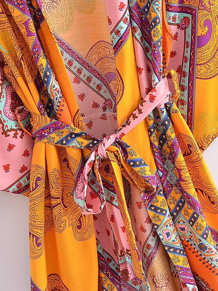 Energize your look by wearing our Sadie Boho Kimono! Its bohemian print adds an original touch to your outfit. With its light fabric and loose fit, it can easily be worn over your everyday outfits.