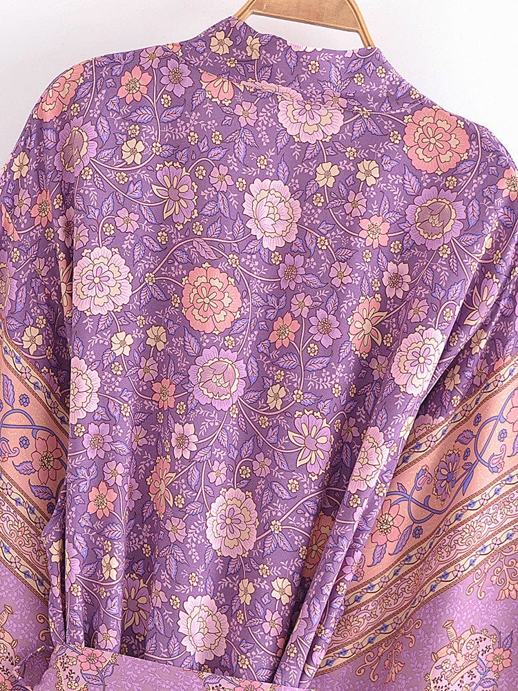 The Selene Boho Kimono is a must-have piece of the bohemian style. This Selene Boho Kimono fits remarkably well in the boho spirit thanks to its exotic look, its vegetal patterns, and its flowing fit.