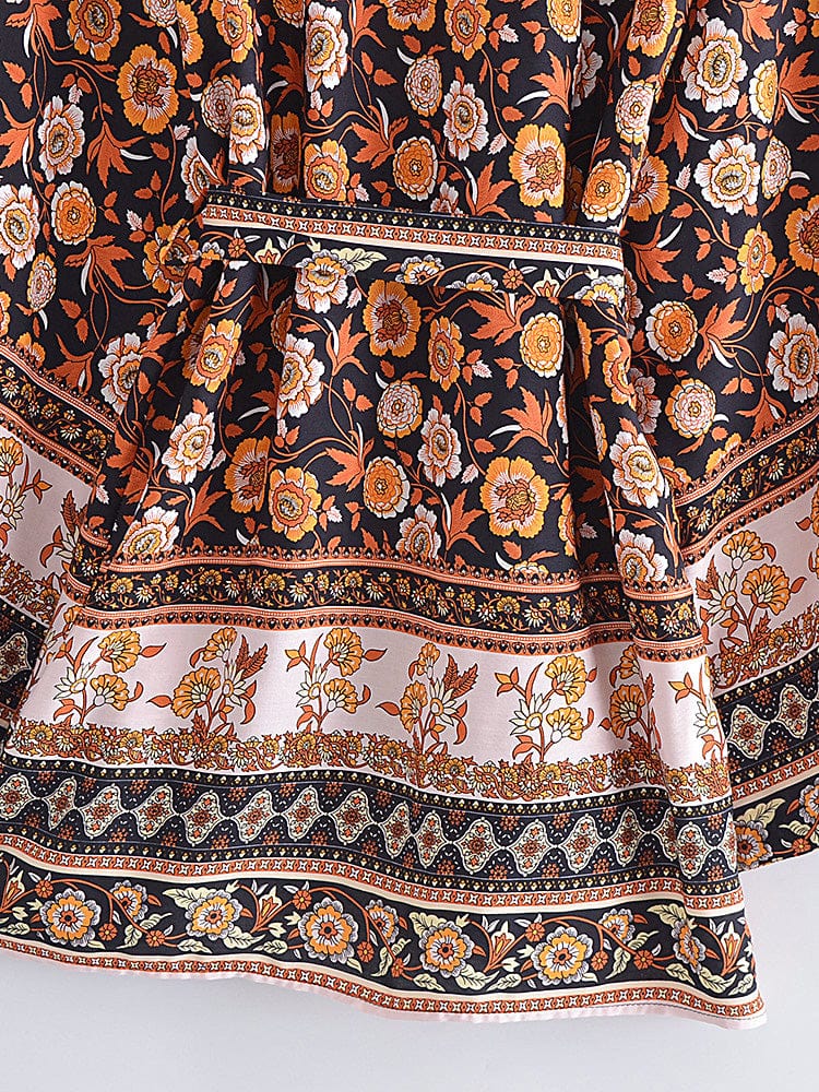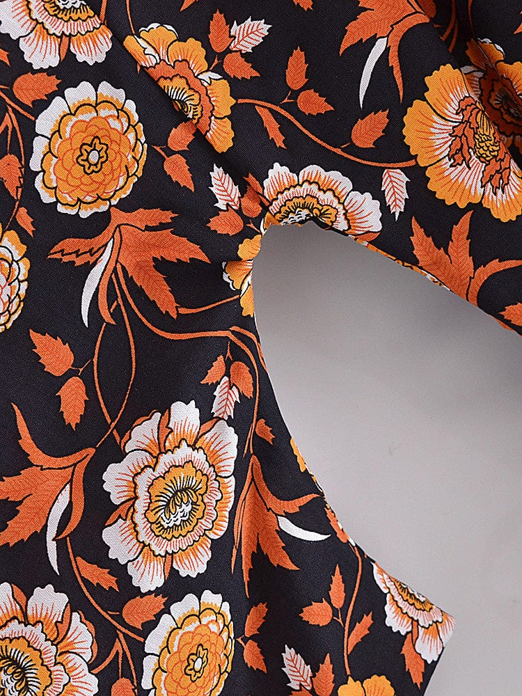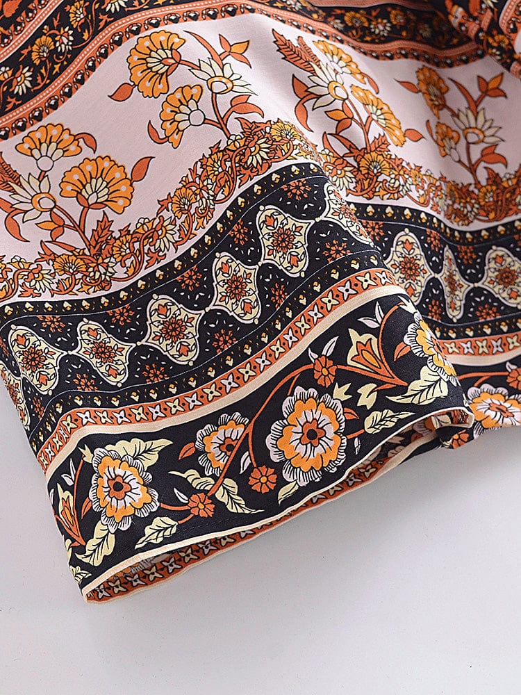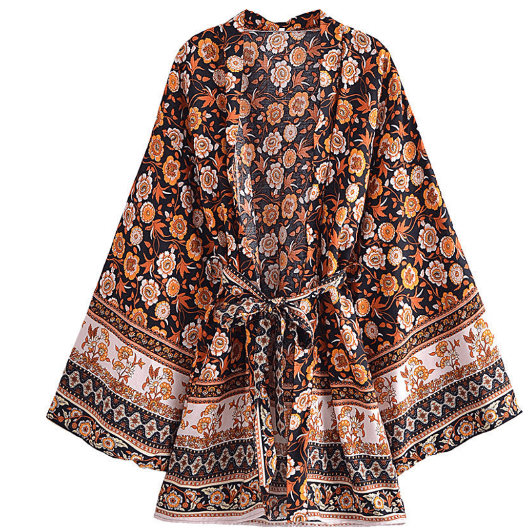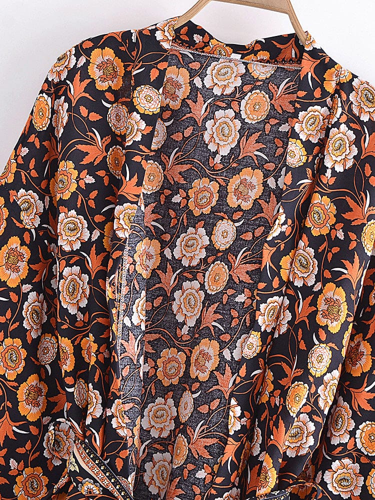 This billowy boudoir staple has exaggerated sleeves with cinch tie detail for additional shape and a bohemian-inspired floral print.