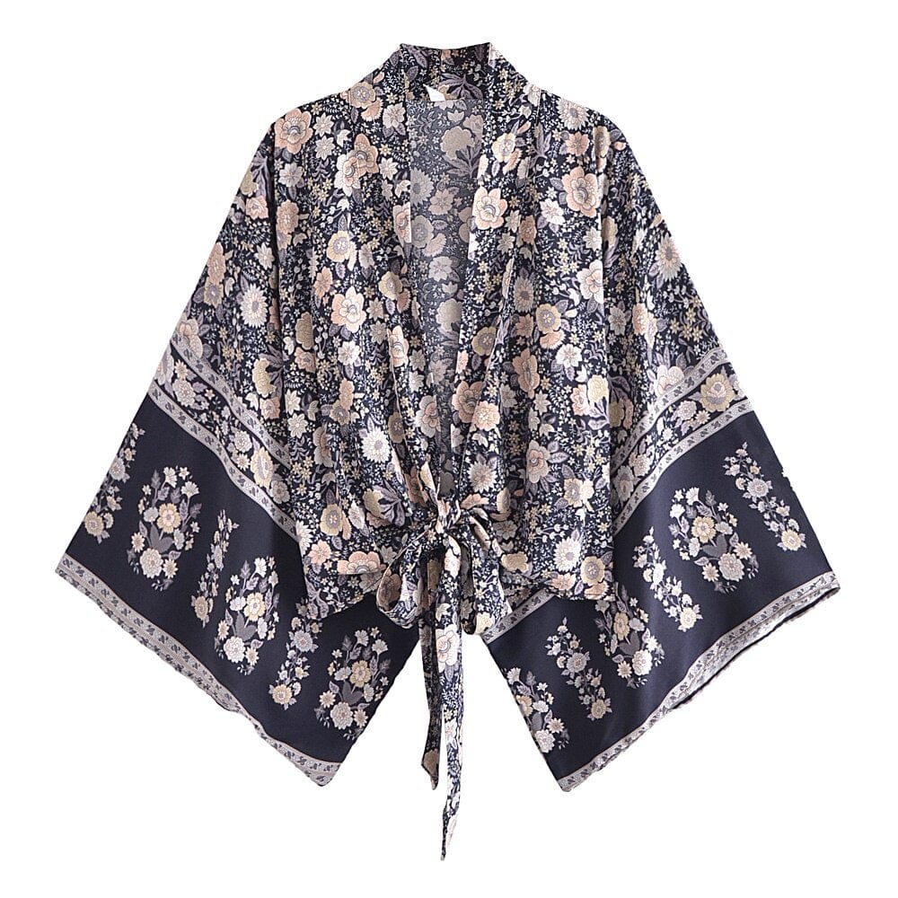 Introducing the Oceana Kimono, the perfect addition to your boho wardrobe. This beautiful kimono features a stunning floral print, with a sash tie at the waist for a flattering fit. The lightweight fabric is perfect for summer days, or layering over another outfit for a touch of bohemian luxury. Add the Oceana Kimono to your wardrobe and let your inner free spirit shine through.